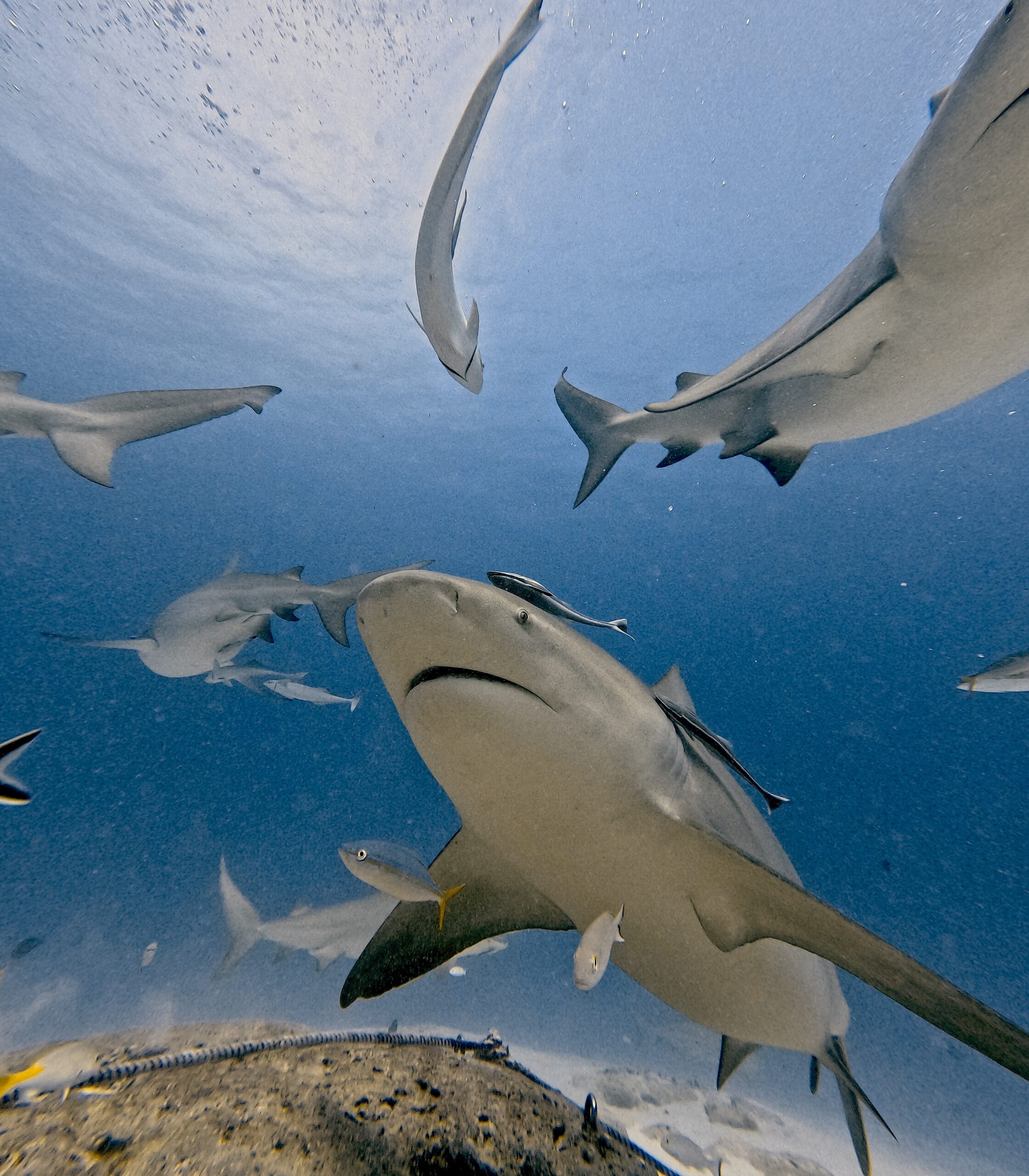 - 10:30 AM – Shark Dive Site – Descend to approximately 24 m / 80 ft to observe bull sharks up close during a supervised feeding dive.
